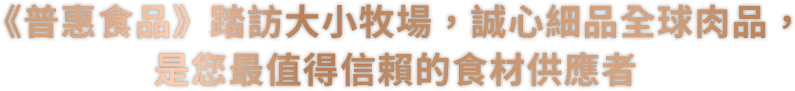 普惠食品企業(yè)股份有限公司於1985年成立至今,致力於提供臺灣食品業(yè)者來自於全球的優(yōu)質牛肉、豬肉、雞肉、火雞肉品與海鮮,肉品批發(fā)與肉品加工分切服務,最多元最專業(yè)的肉品進口商與批發(fā)商。